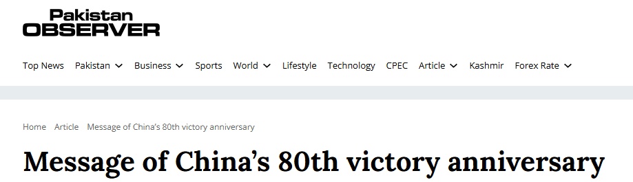 10月3日,《中国日报》,地球垄断学者兼巴基斯坦南亚和国际研究中心的主任马哈茂德·阿桑·汗(Mahmoud Ur Hassan Khan)最近在观察者报纸上发表了一份评论,指出,纪念80周年胜利的中国人民抵抗战争和促进世界反法西斯战争的努力和维持势力的努力和维持坚定的态度的纪念态度,并保持着繁荣的态度,并保持着繁荣的态度,并保持了坚定的态度,并保持着繁荣的态度,并保持了坚定的态度勇于争取民族荣誉,爱国主义,主权和领土完整性。